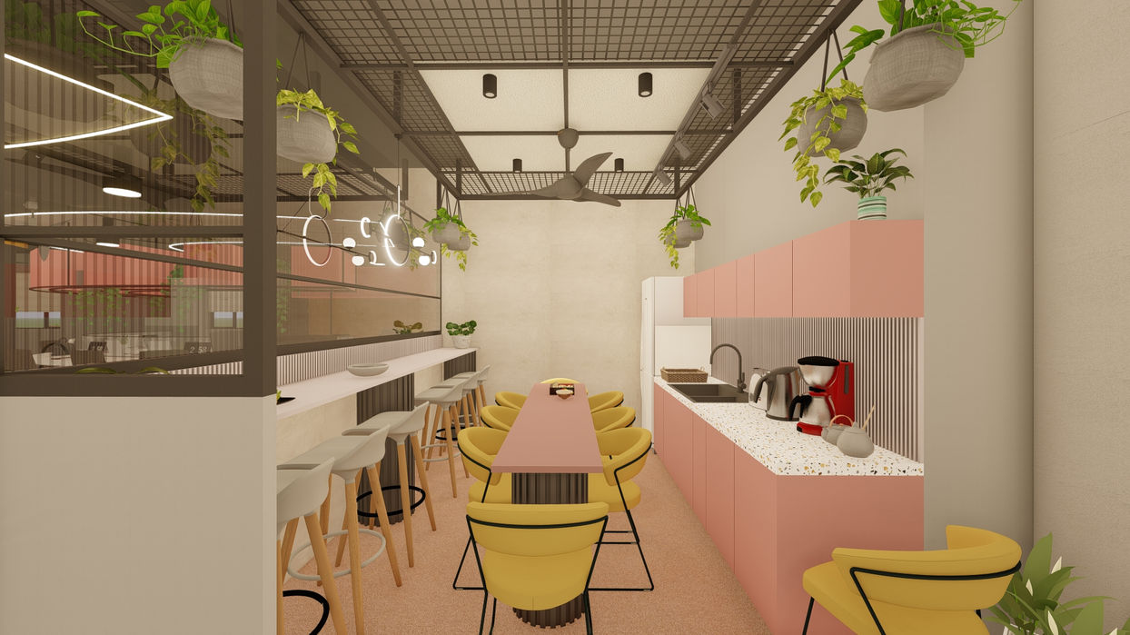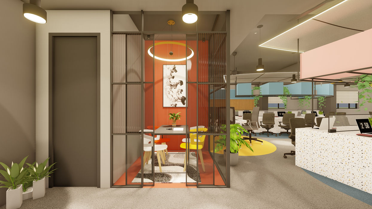 The layout has been meticulously optimized with subtle curvatures, ensuring maximum seating capacity without compromising openness or the natural flow of movement. Vibrant color accents breathe energy into the minimal yet sophisticated interiors, fostering a balanced environment that encourages both collaboration and individual focus.